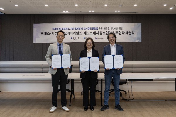 지능형 로봇 솔루션 전문기업 씨메스(CMES, 대표 이성호)와 체외진단의료기기 전문기업 시선바이오머티리얼스(대표 박희경), 바이오공학 전문기업 레보스케치(대표 이성운)는 ‘차세대 AI 로보틱스 기반 초정밀 암 조기검진 플랫폼 공동 개발 및 사업화 협력’을 위한 3자 양해각서(MOU)를 체결했다고 11일 밝혔다.